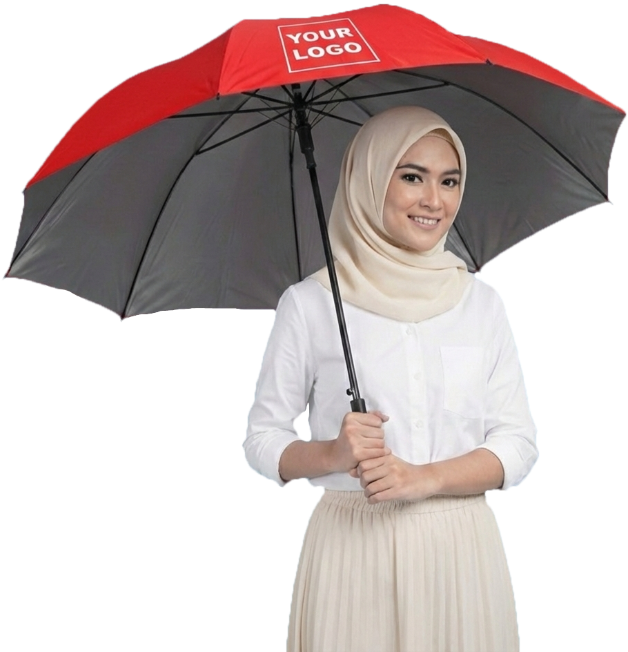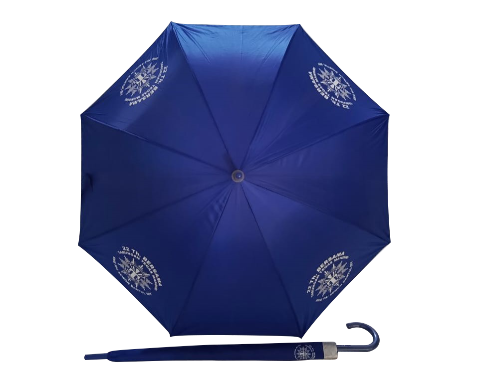 Payung yang dirancang khusus sebagai media pemasaran dengan menampilkan logo perusahaan atau pesan branding pada permukaan kainnya. Berbeda dengan payung biasa, produk ini berfungsi sebagai “iklan berjalan” yang memberikan visibilitas tinggi karena area cetaknya yang luas dan mudah terlihat saat digunakan di tempat umum.
